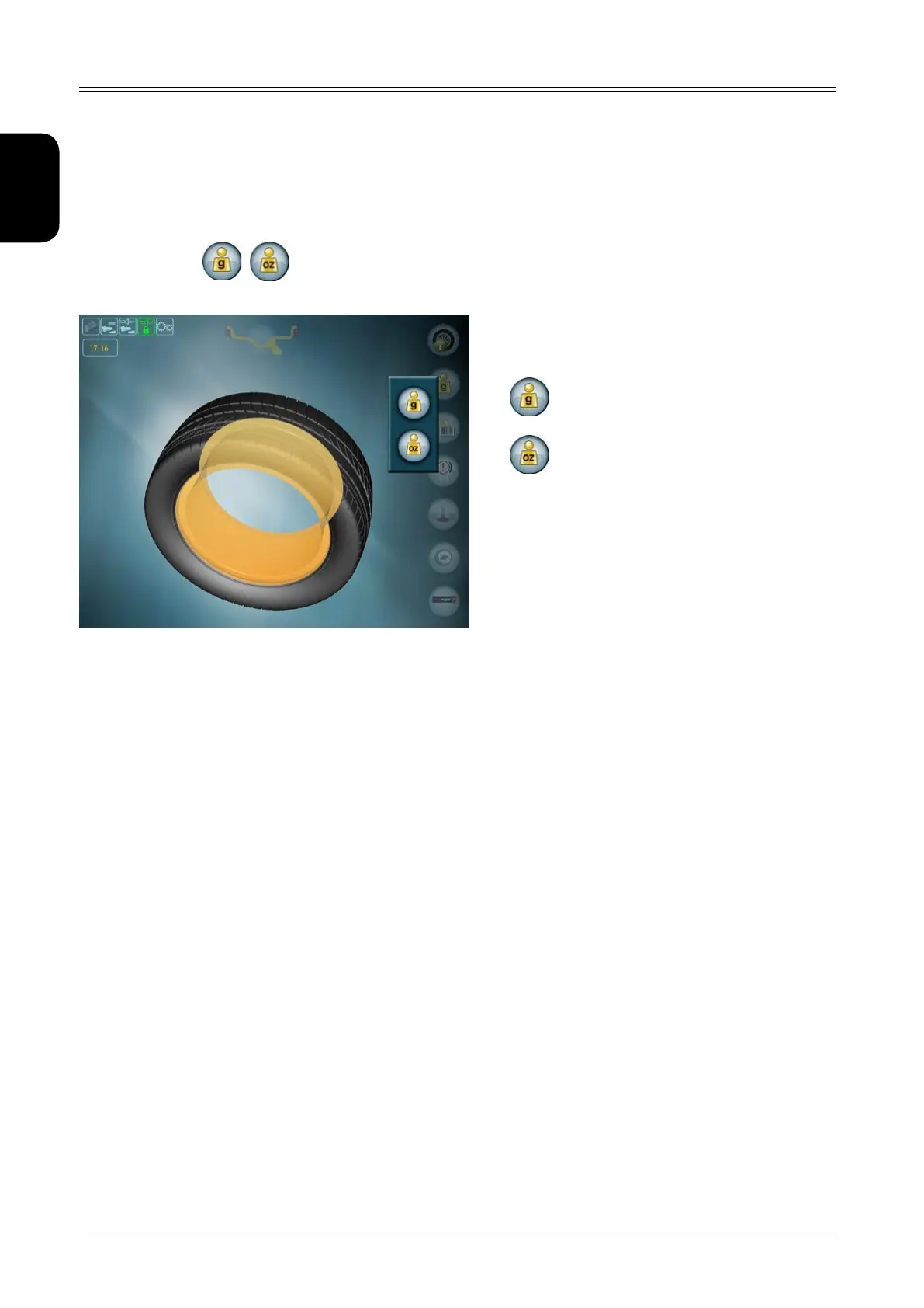 Allows selecting whether to view the unbalance values expressed in grams or ounces.