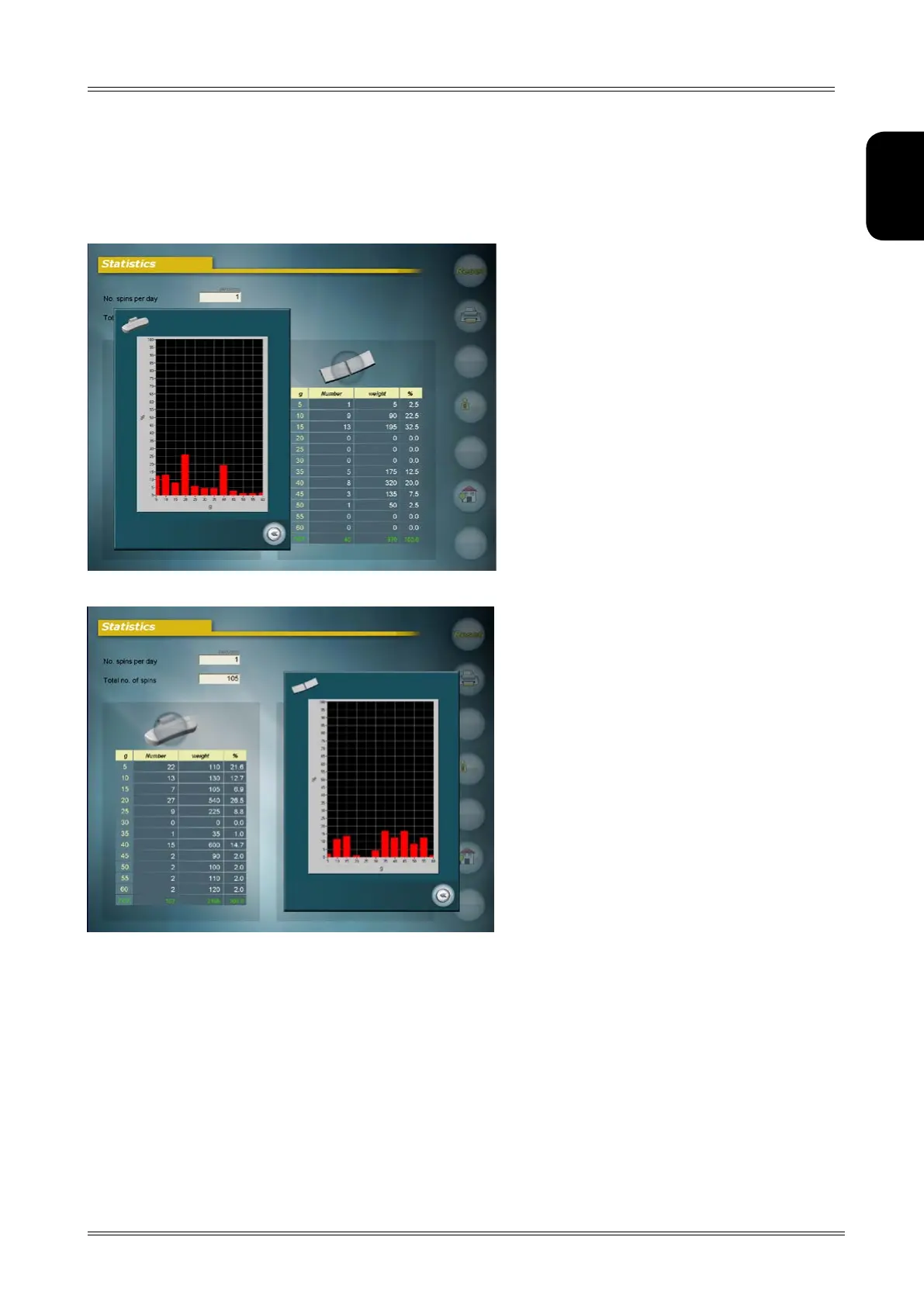graphic display of the statistics of the weights