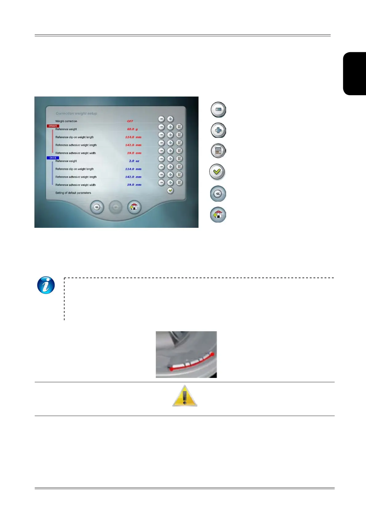 Correctly setting the length of the correction weights allows the wheel balancing machine