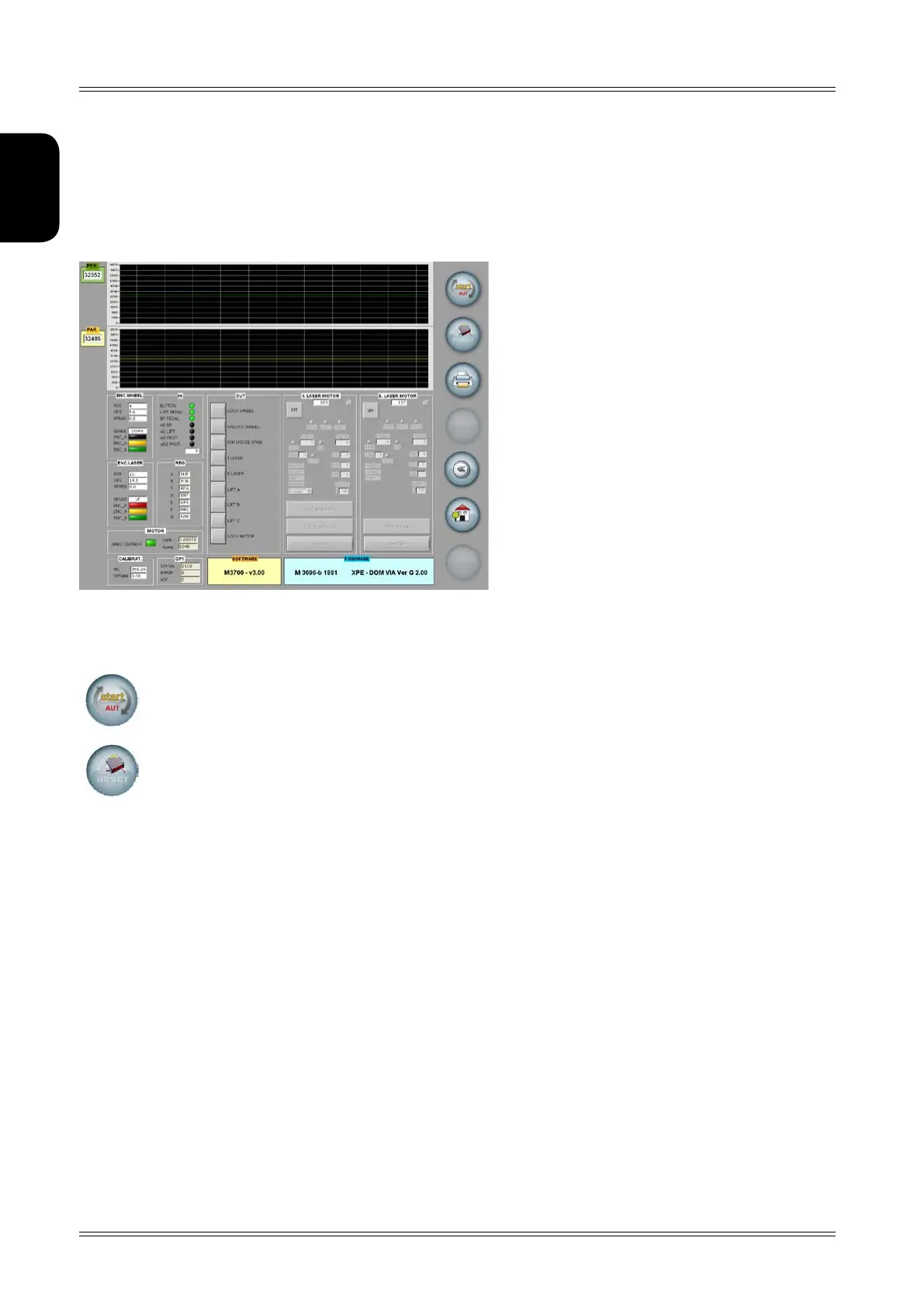 Enables a laser reset cycle, to be executed only on specific request of Technical Service.