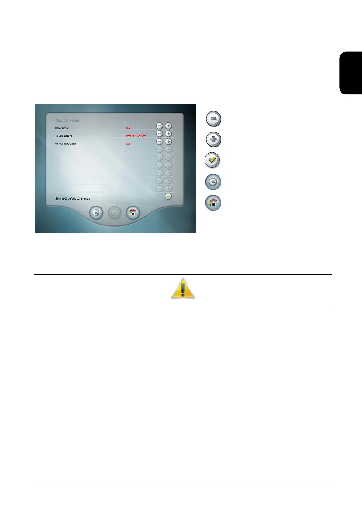 Touch buttons: enables and selects/disables the sound emitted when pressing any button