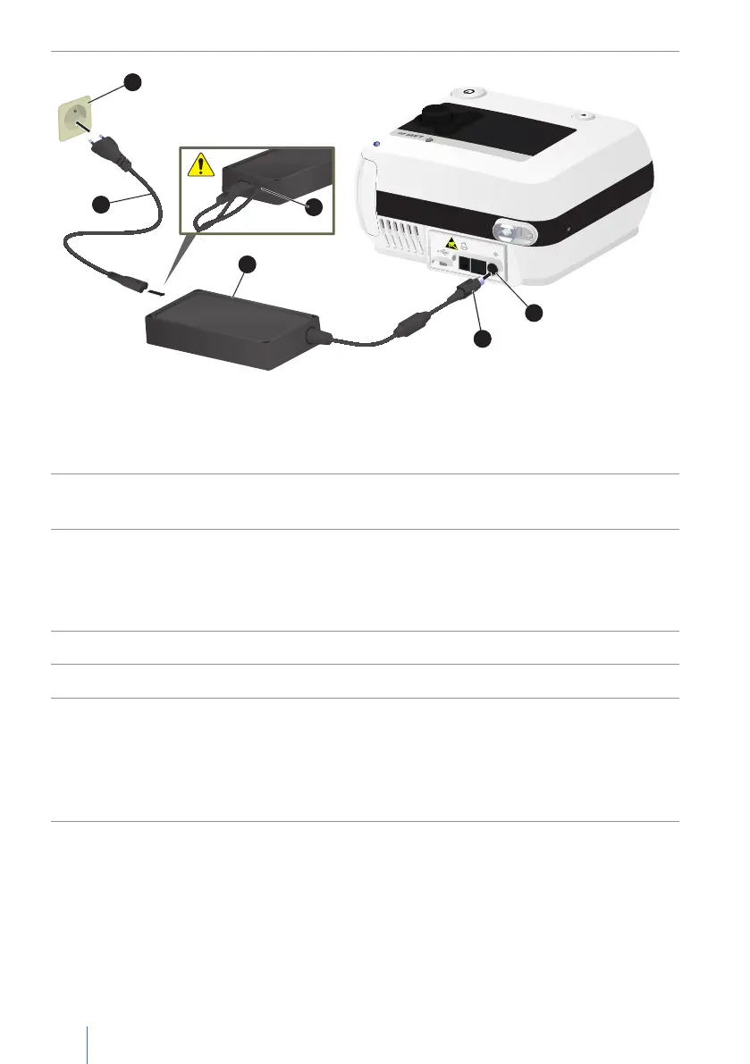 A Socket B Mains cable C Power supply unit D DC plug with snap lock