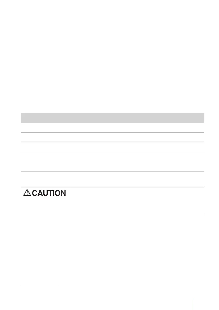 1 The display “Internal battery low” is shown at 20% of the battery’s rated value.