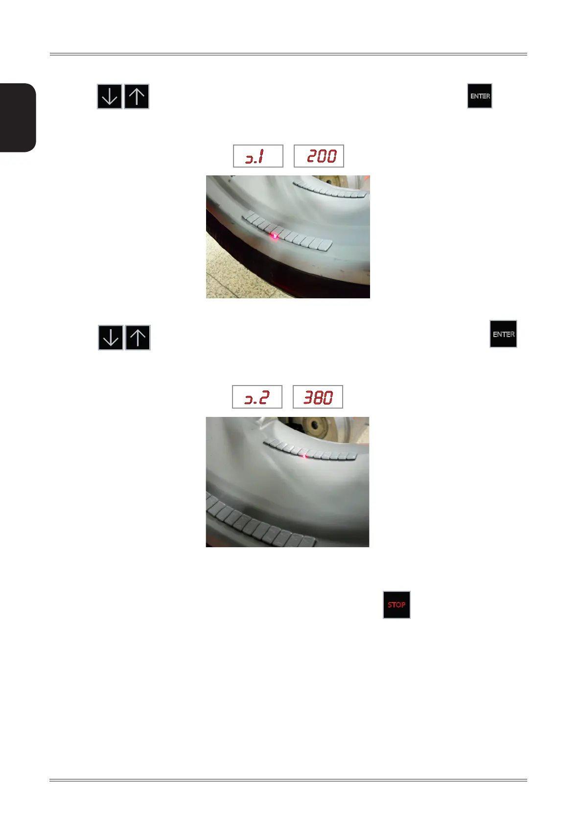 5. Press to move the spotter device laser near the innermost adhesive weight and press