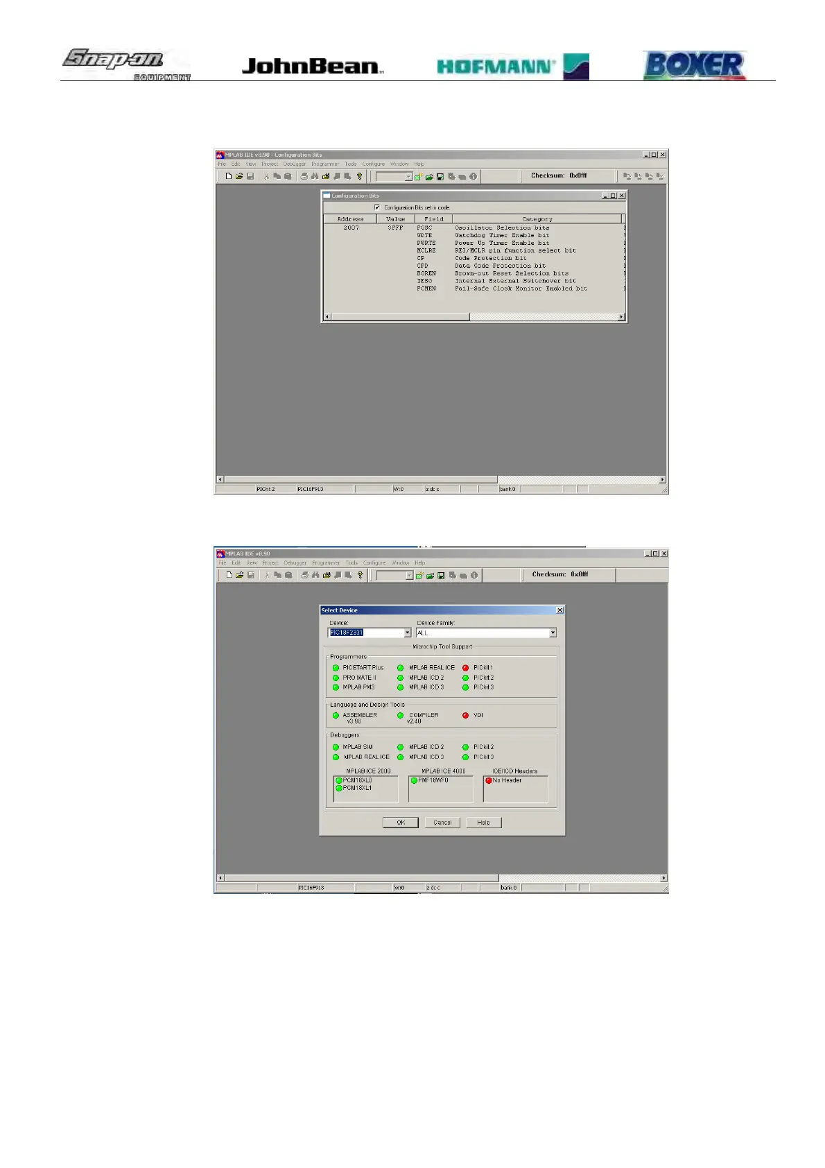 d) With Configure -> Select Device chose 18F2331 (device to be programmed).
