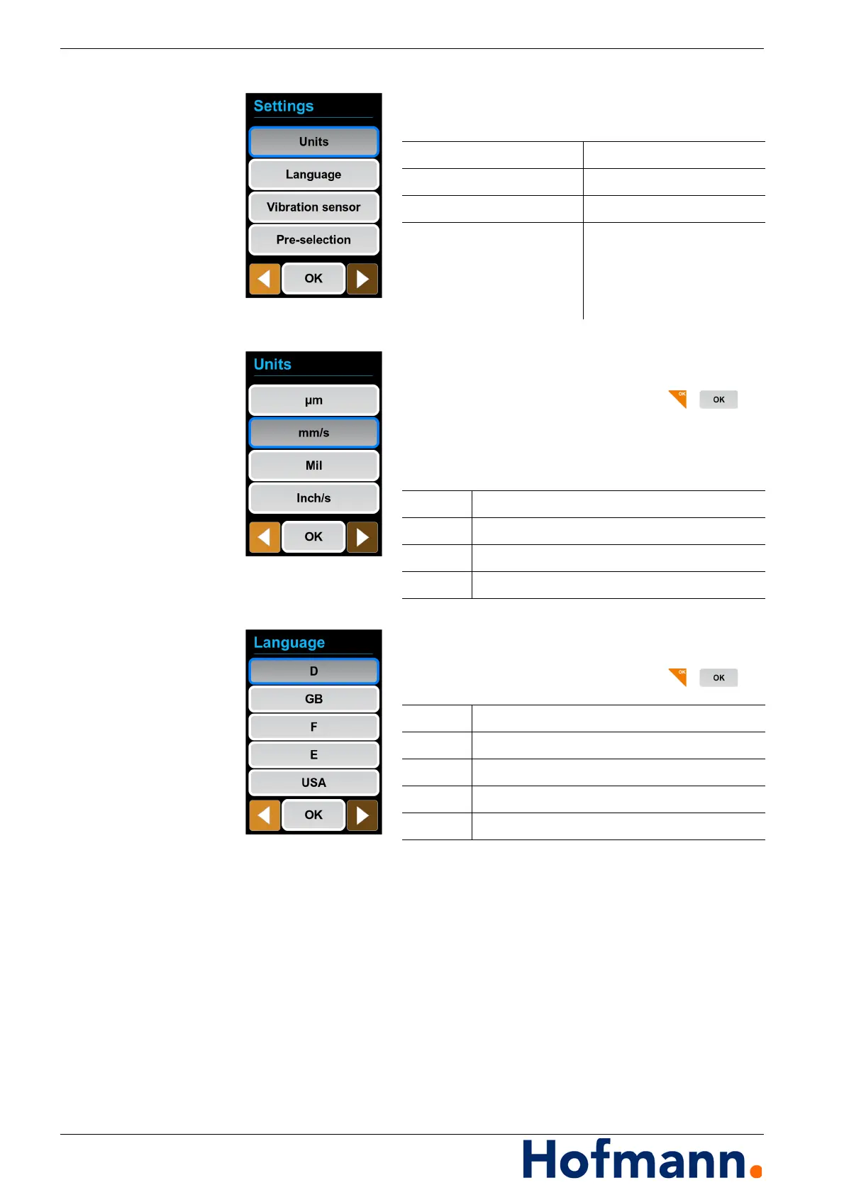 Make selection and confirm with / .