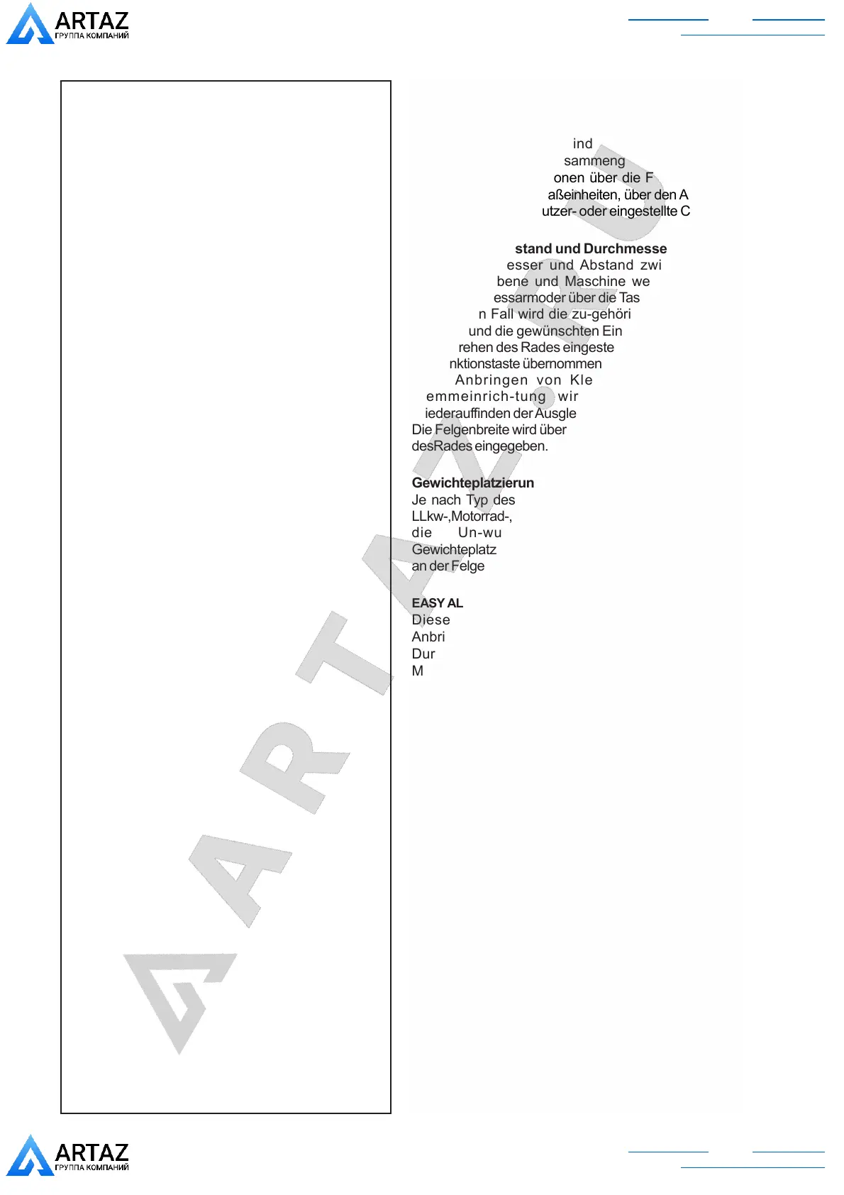 Je nach Typ des auszuwuchtenden Fahrzeugs (Pkw-,