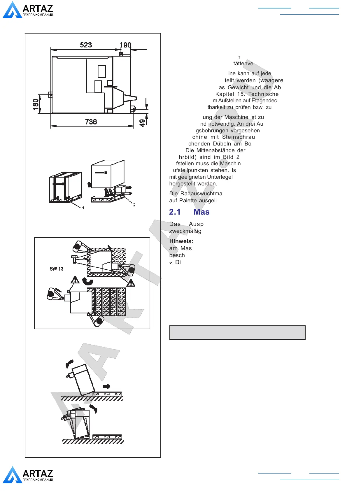 2.1 Maschine auspacken