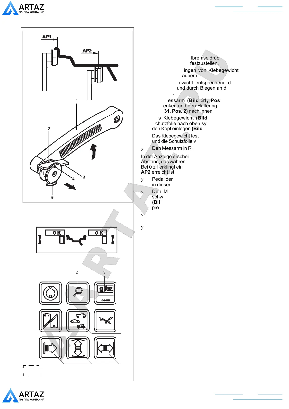 y Das Klebegewicht (Bild 31, Pos. 3) mit der