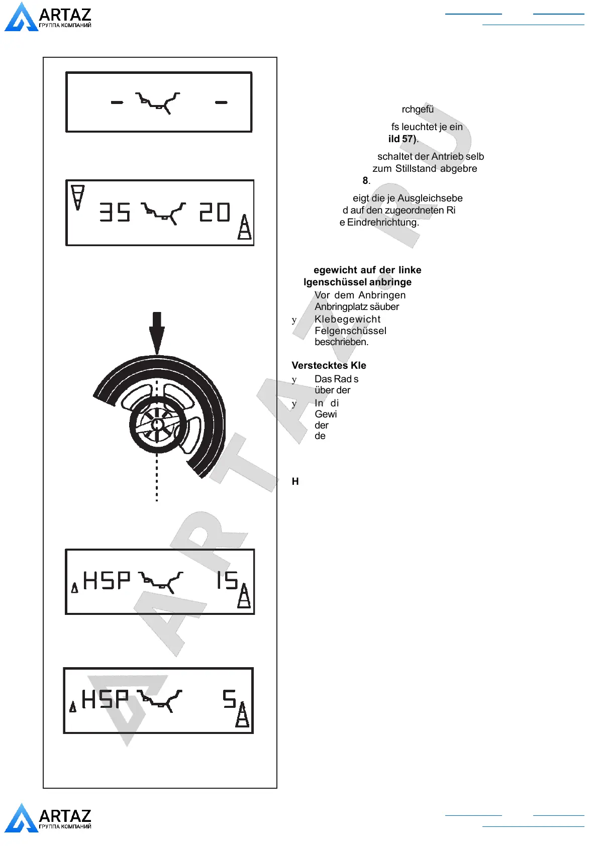 Unwucht und auf den zugeordneten Richtungsanzeigen
