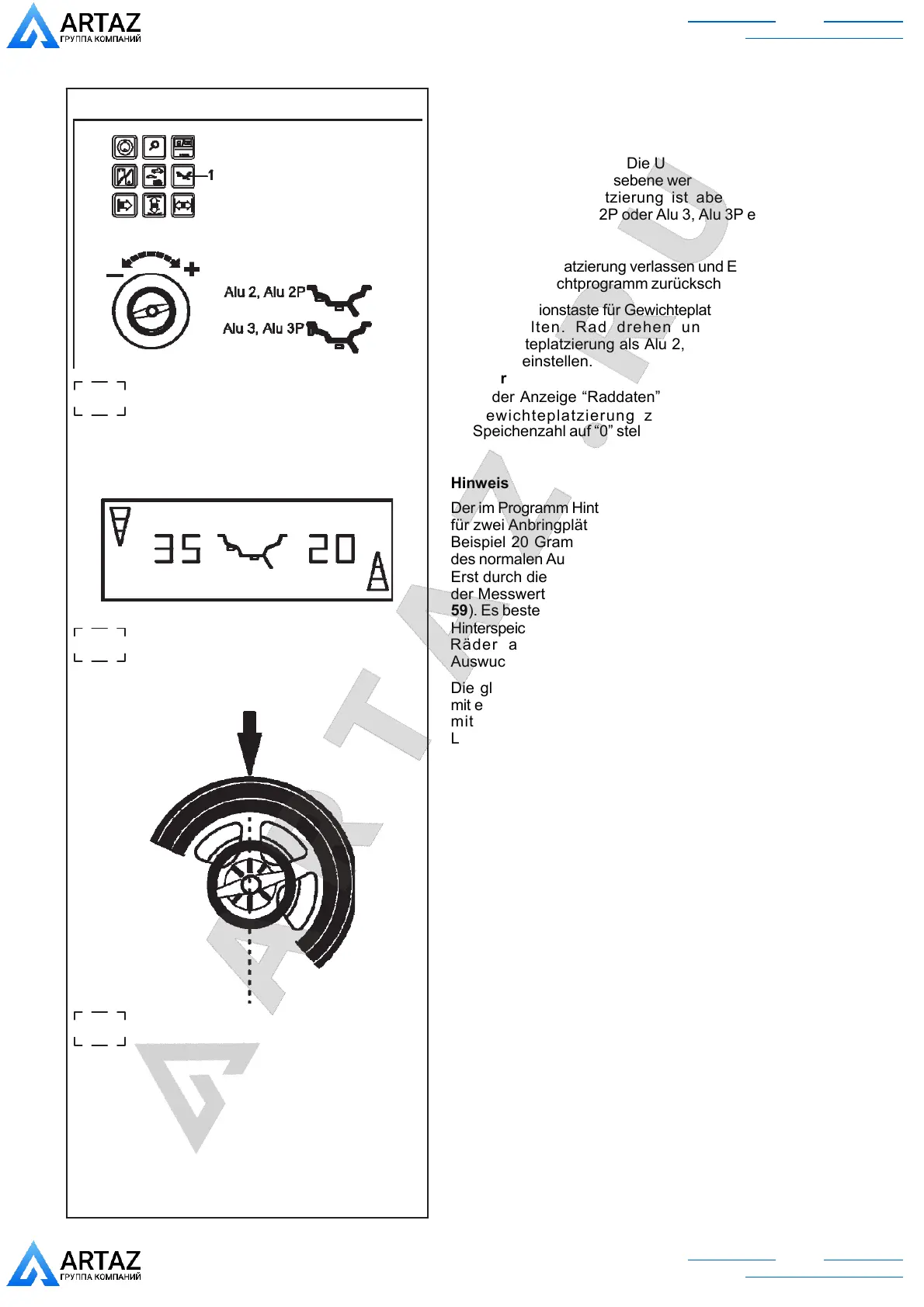 Pos. 1) kurz drücken. Die Unwuchten für die linke
