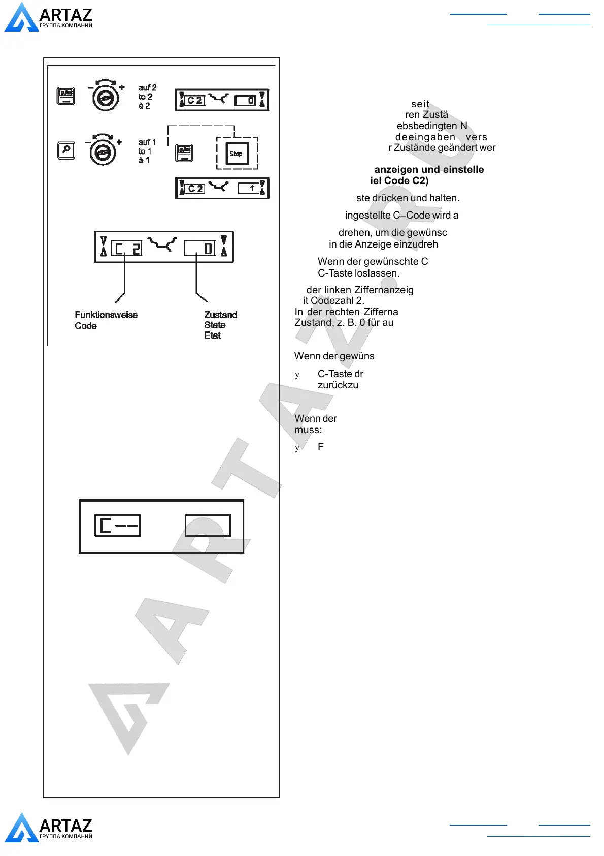 Der letzte eingestellte C–Code wird angezeigt.