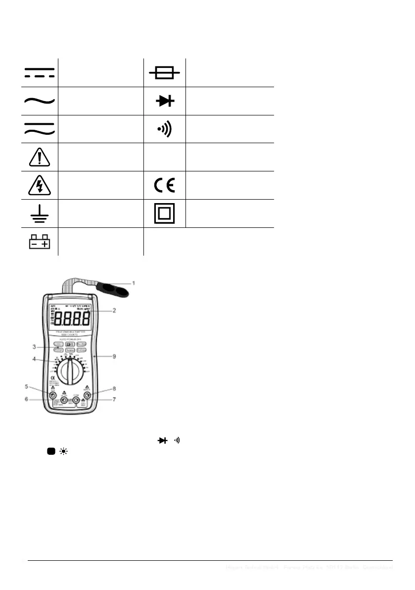 “ ” “ ”oder °C/°F wenn der Funktionsschalter in der Position „Ω” eingestellt ist.