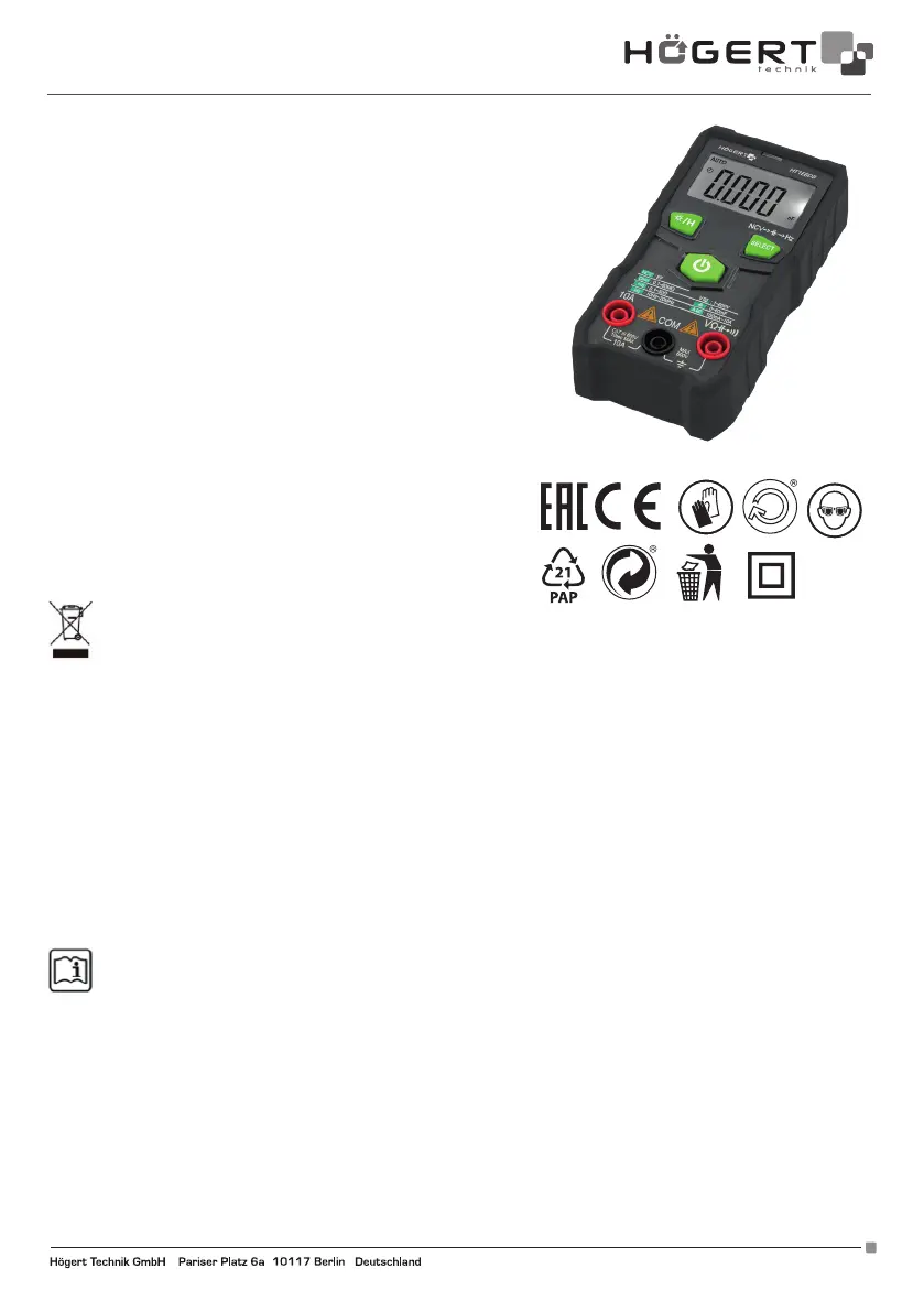 Das Gerät ist für den Einsatz in privaten Haushalten vorgesehen. Digitalmultimeter HT1E605 ist ein innovatives, effizientes, zuver-