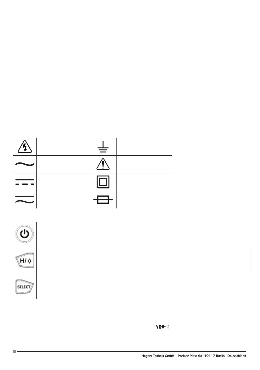 rozpoznawania pomiaru napięcia / oporności. Dłuższe przytrzymanie przez ok. 2s wyłączy urządzenie.