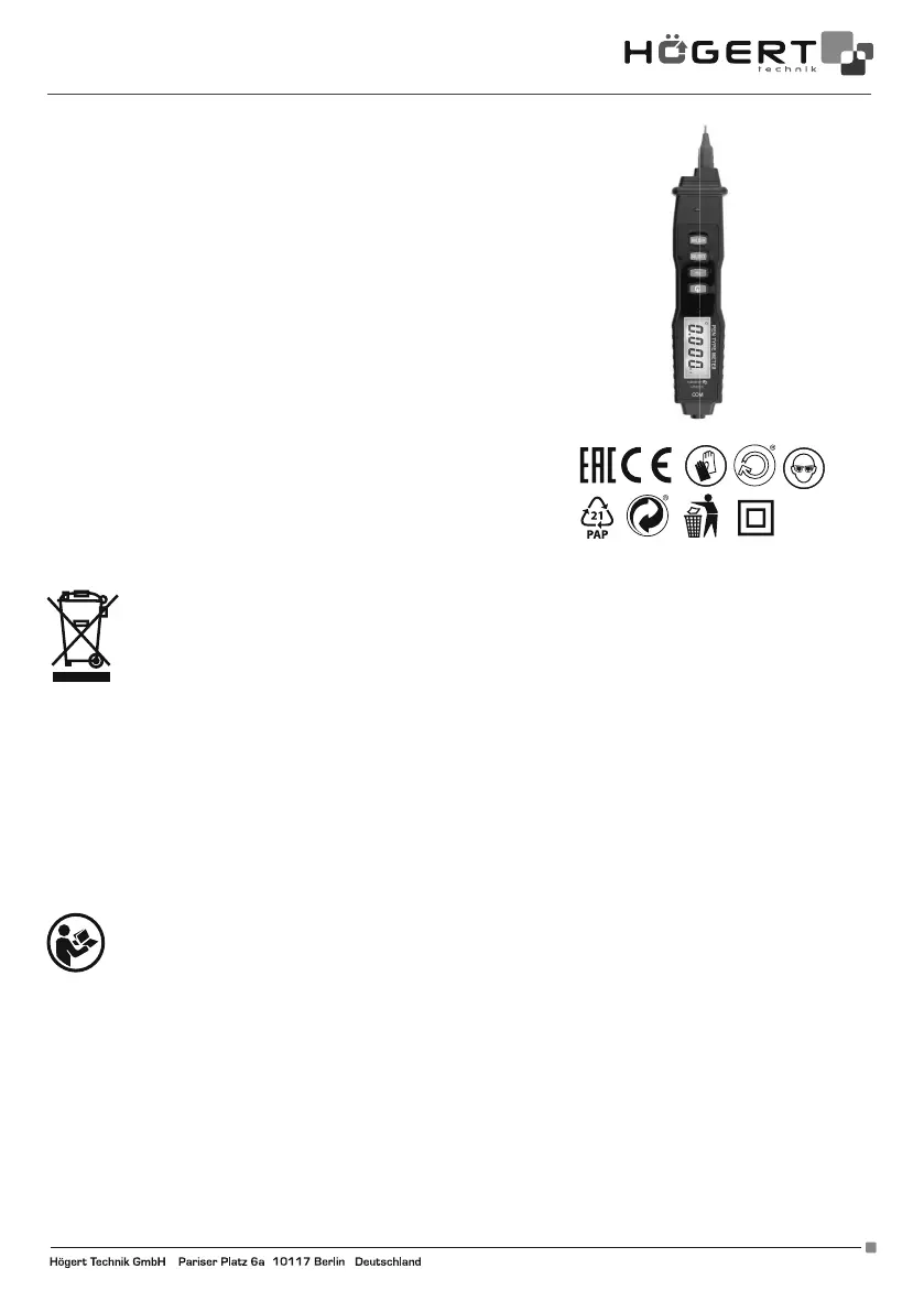 Das Gerät ist für den Einsatz in privaten Haushalten vorgesehen. Das Digitalmultimeter HT1E615 ist ein innovatives, effi zientes, zuver-