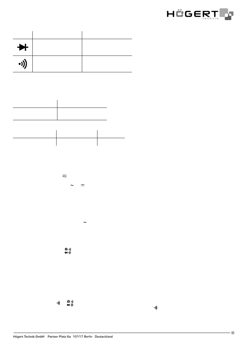 For the continuity test: when the resistance is between 30 Ω and 100 Ω, the buzzer may or may not sound. When the resistance is