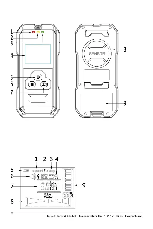 6. przycisk wykrywania profi li drewnianych, długie przyciskanie przełącza tryb dokładny / głęboki.