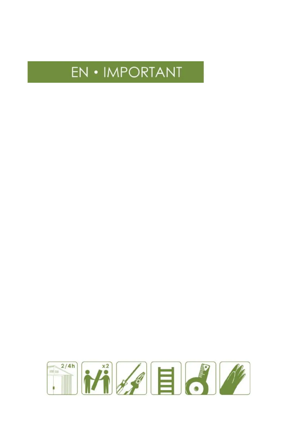 · Do not assemble the shed close to children and/or pets.