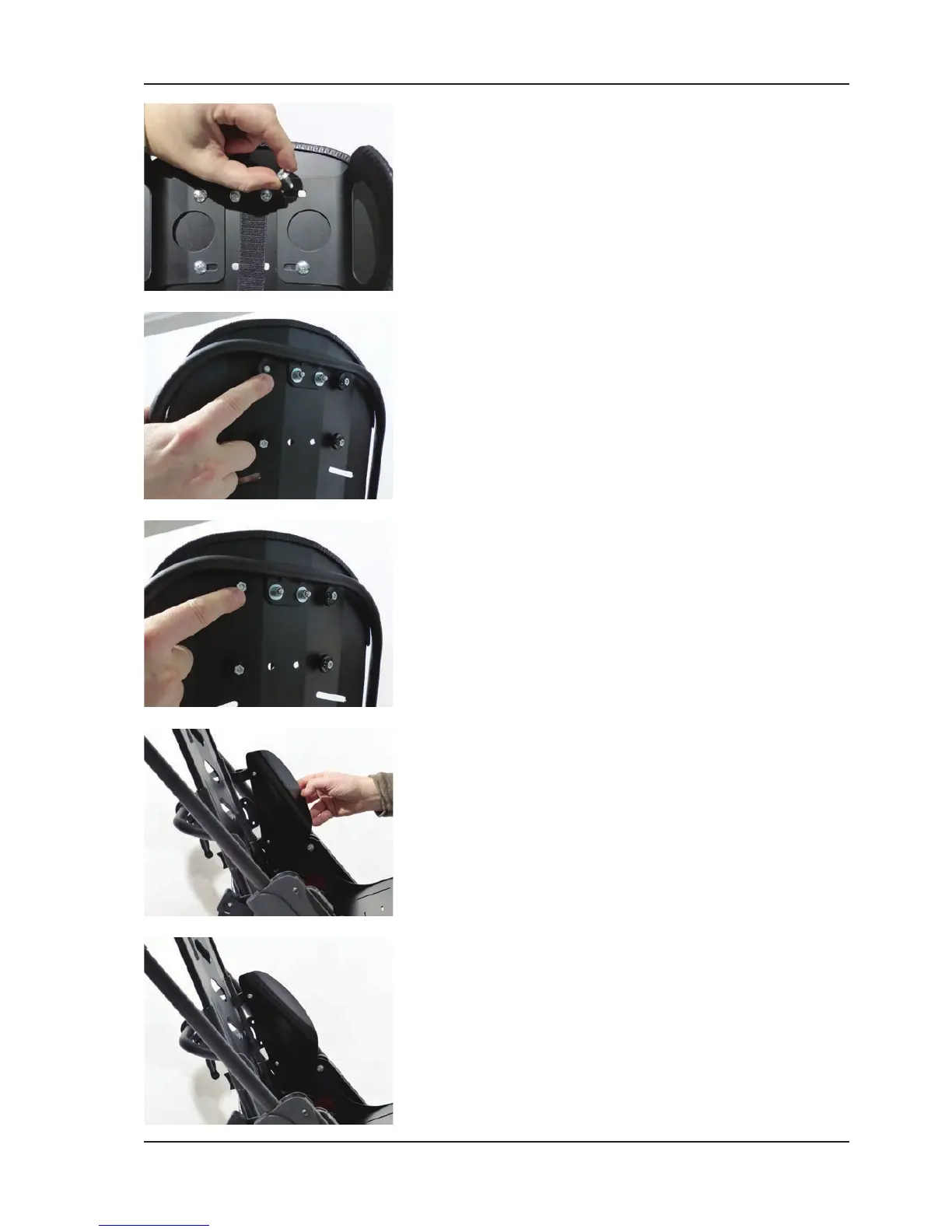 •Fixbothcoachboltswiththeknurlednutsonthebackofthebackrest