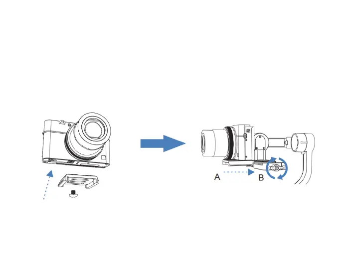 1. Přimontujte rychloupínací desku na kameru. 2. Vložte kameru s rychloupínací deskou (A) do