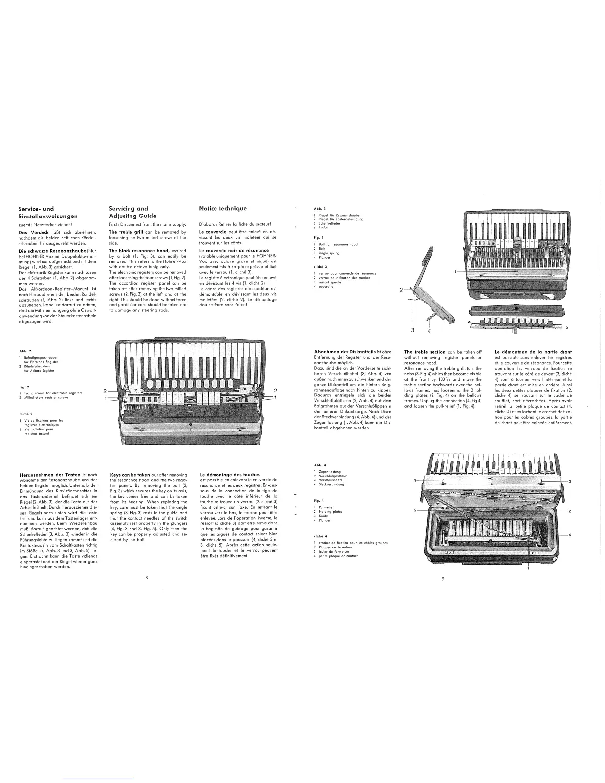 Hohner Vox - Service and Adjustment Procedures; Removing Treble Grill and Resonance Hood; Removing Register Panels; Removing the Treble Section