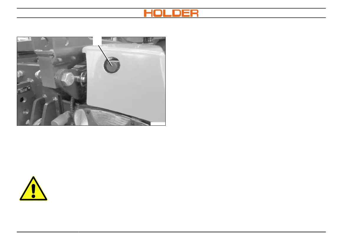 2. Press button (1) and swing the tank out-