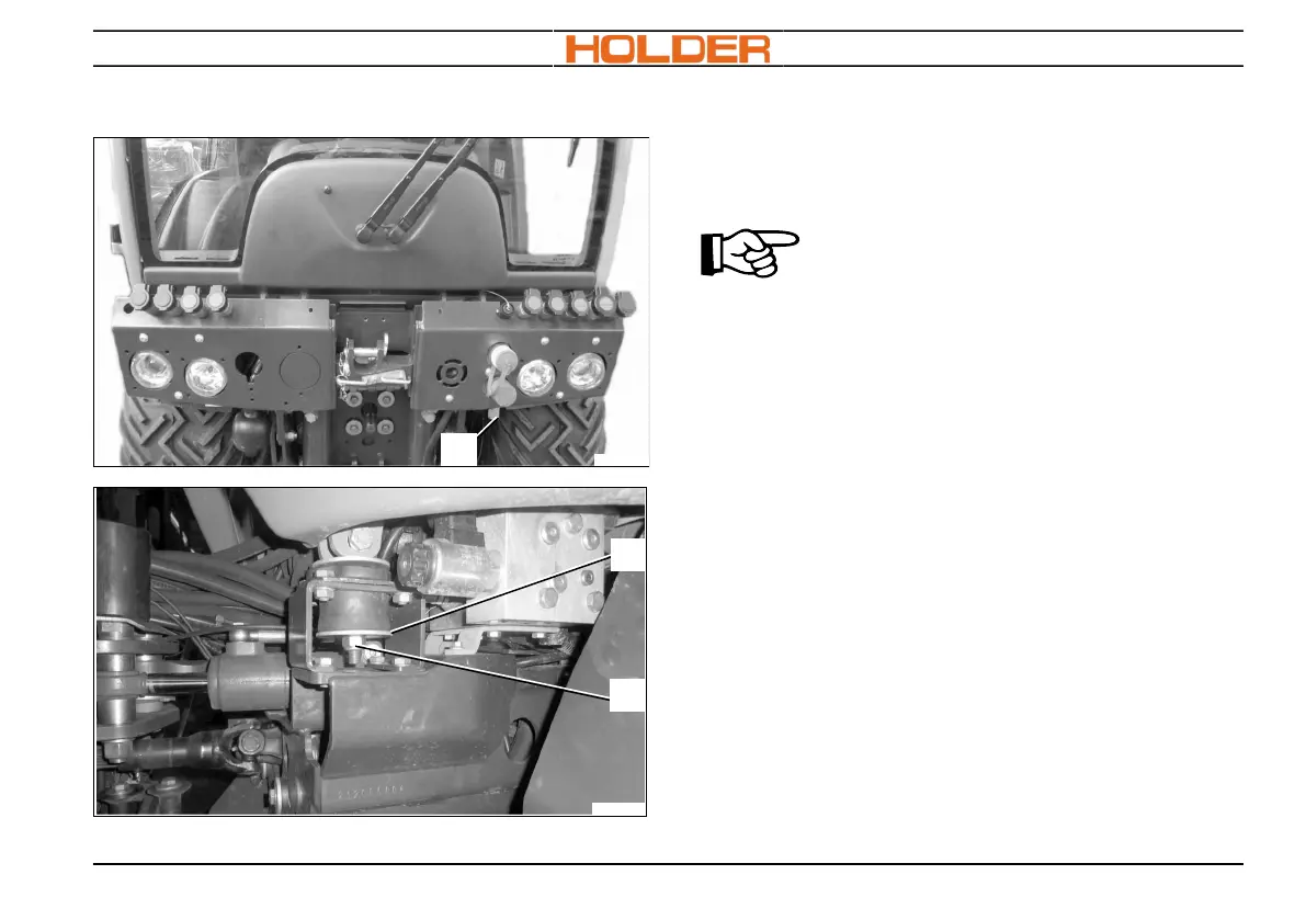 nection* (1) for tilting the cab is located at the front