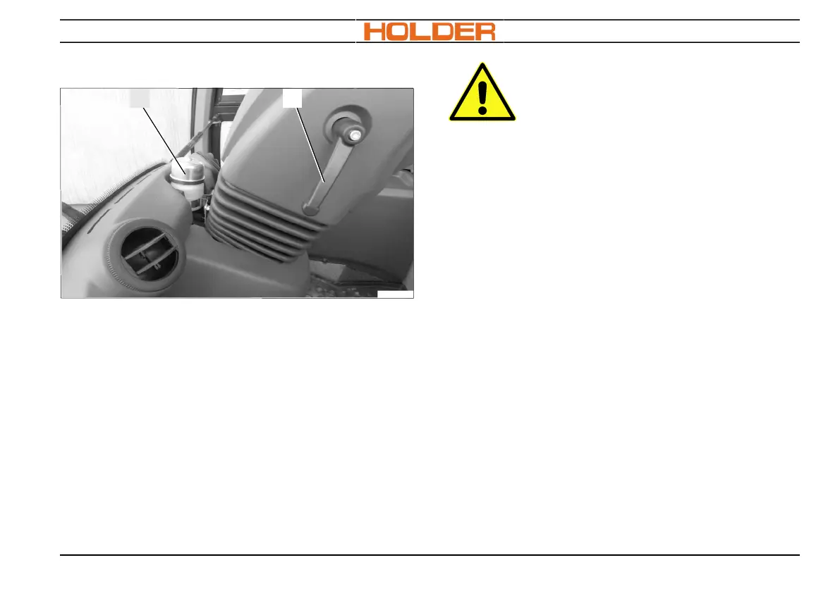 The suction container is in front of the steering col-