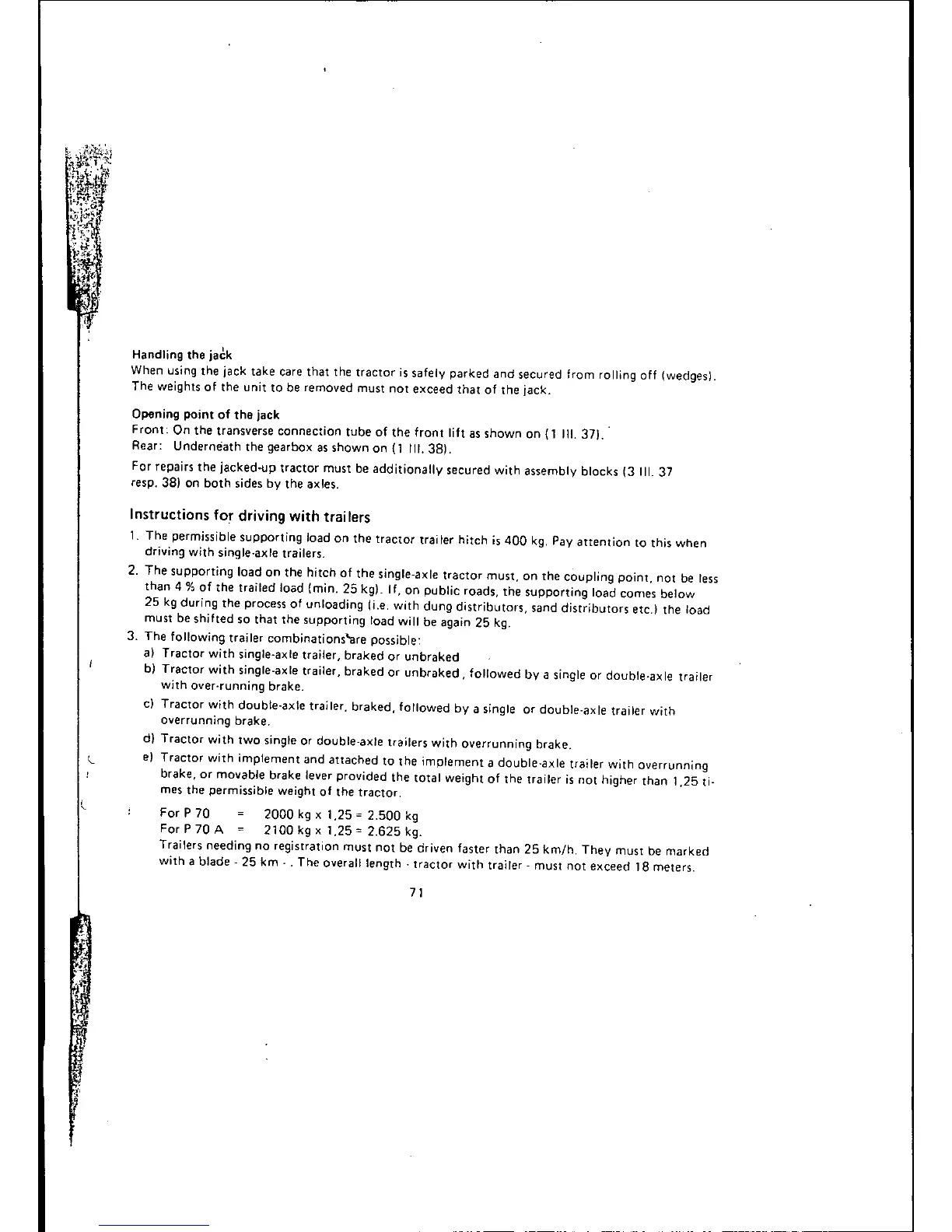 Holder Park 70 - Handling the Jack; Instructions for Driving with Trailers