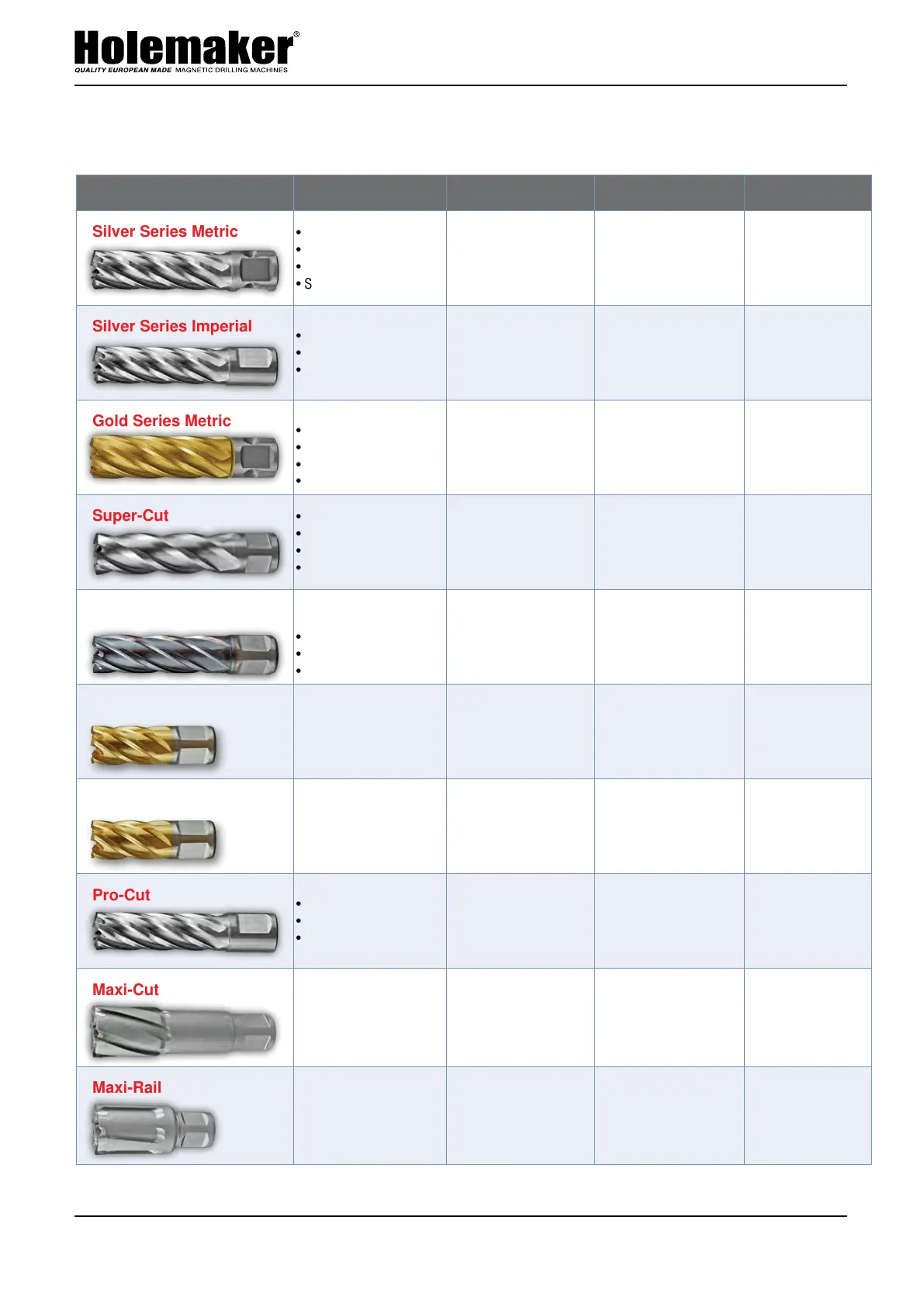 Cutter Type Features Diameter Available Cut Depth Available Applications