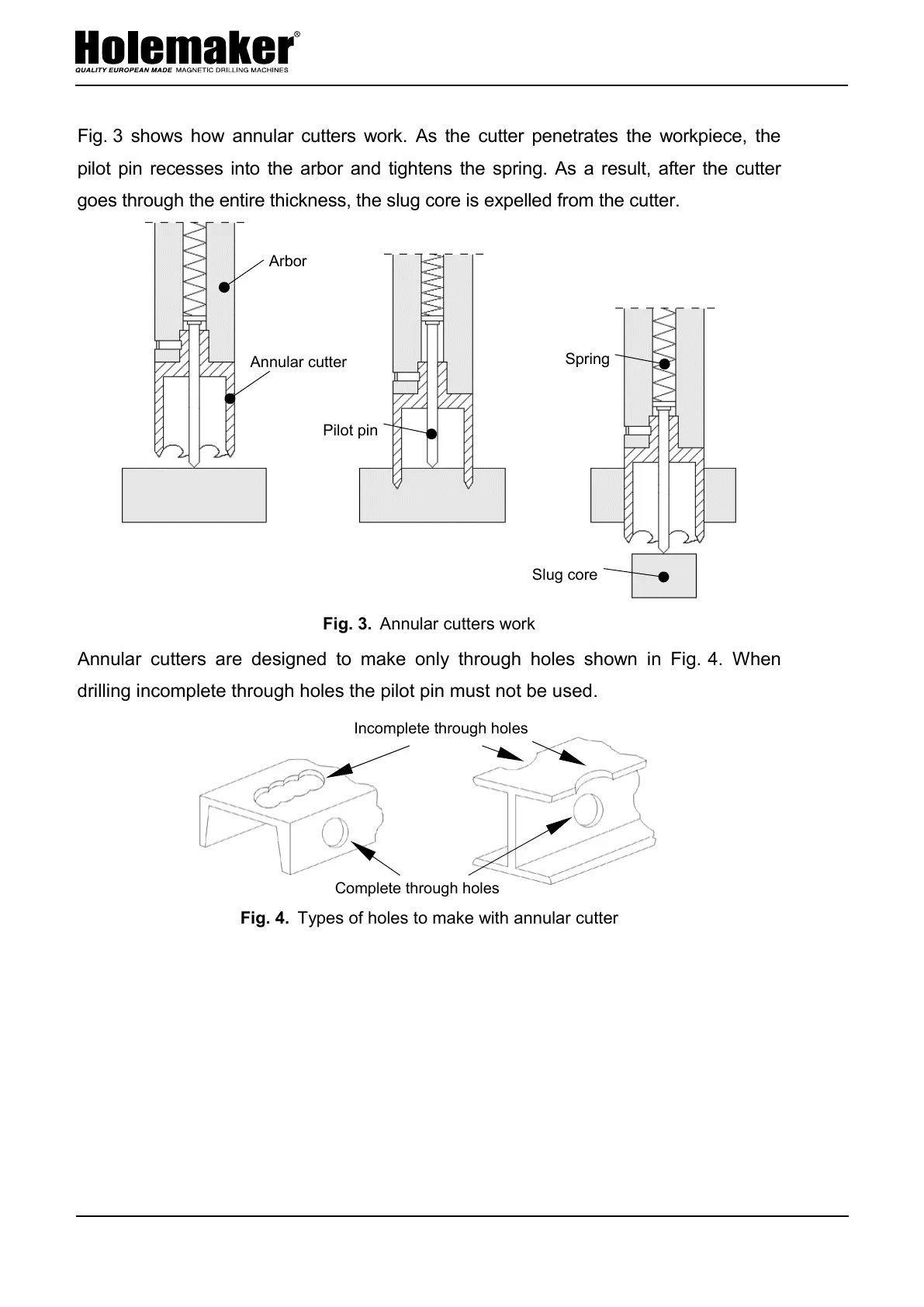 Annular cutters are designed to make only through holes shown in Fig. 4. When