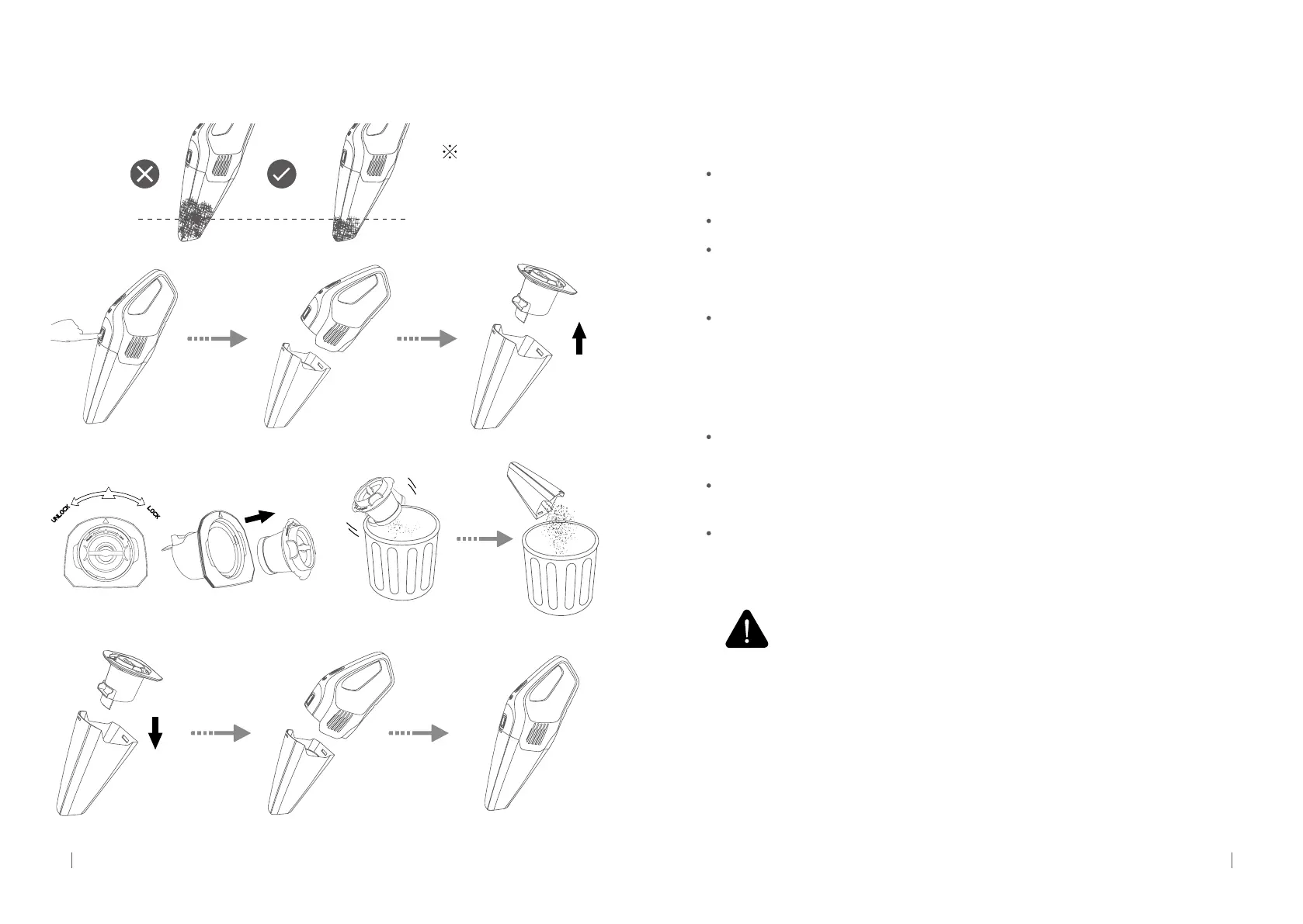 Faites attention à incliner le goudet à poussière pour éviter les fuites d’ordures.