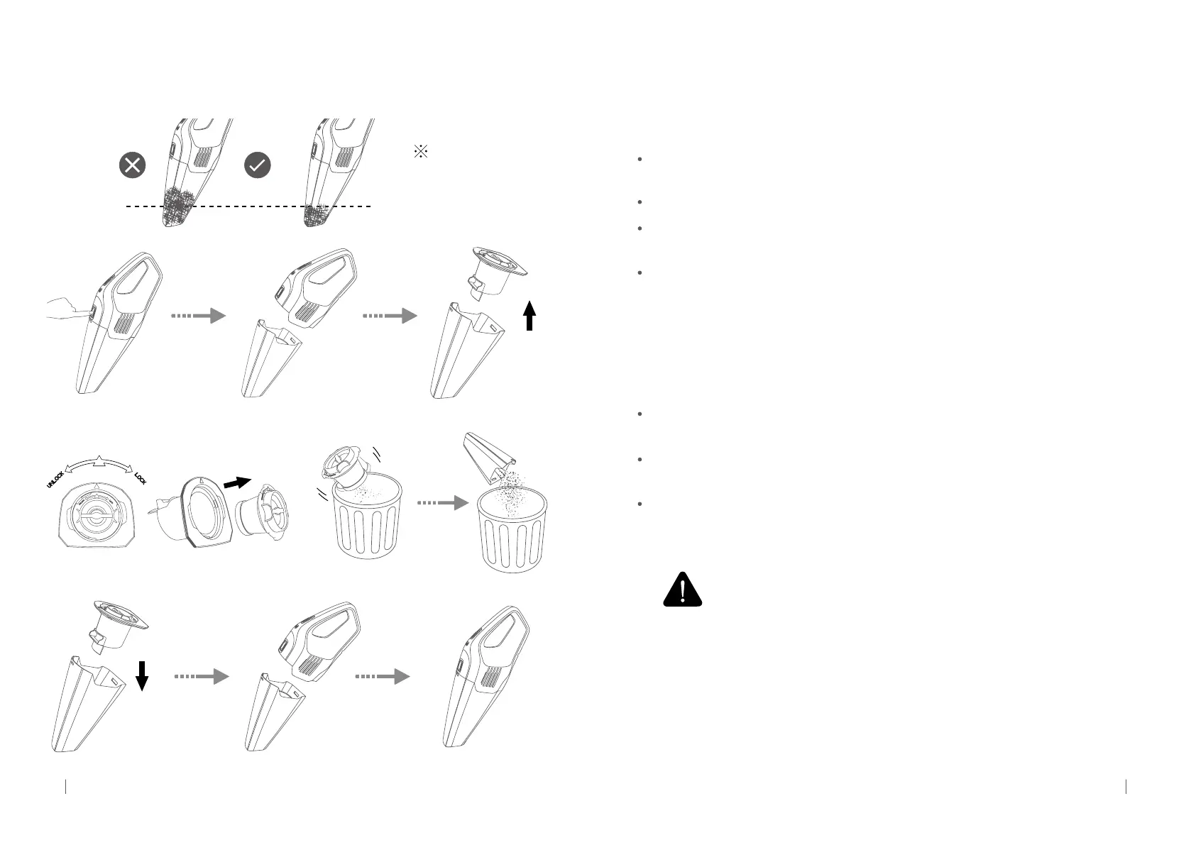 Tenga cuidado de inclinar la taza de polvo para evitar fugas de basura;