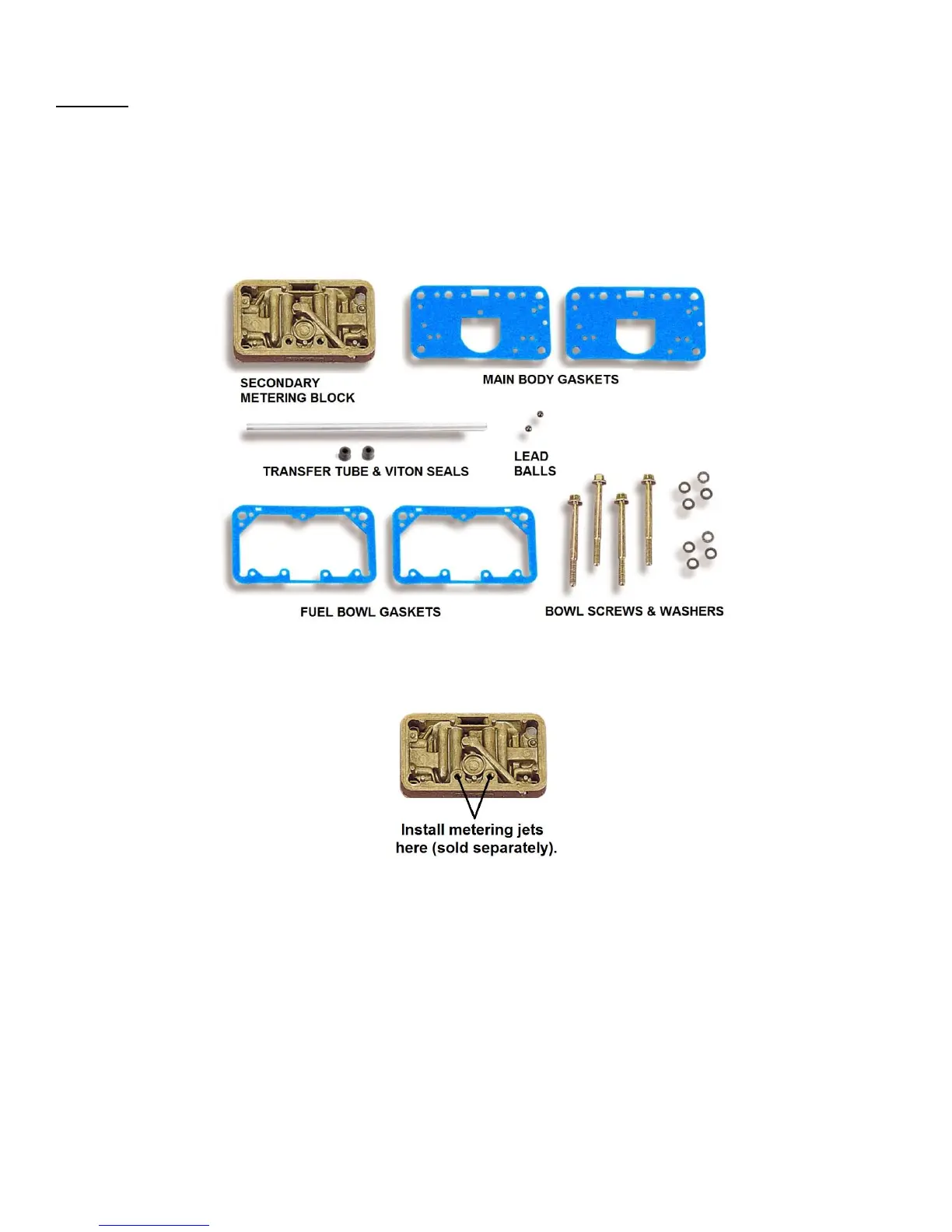 NOTE: It will be necessary to purchase a set of two main metering jets and install them into the secondary metering block before the
