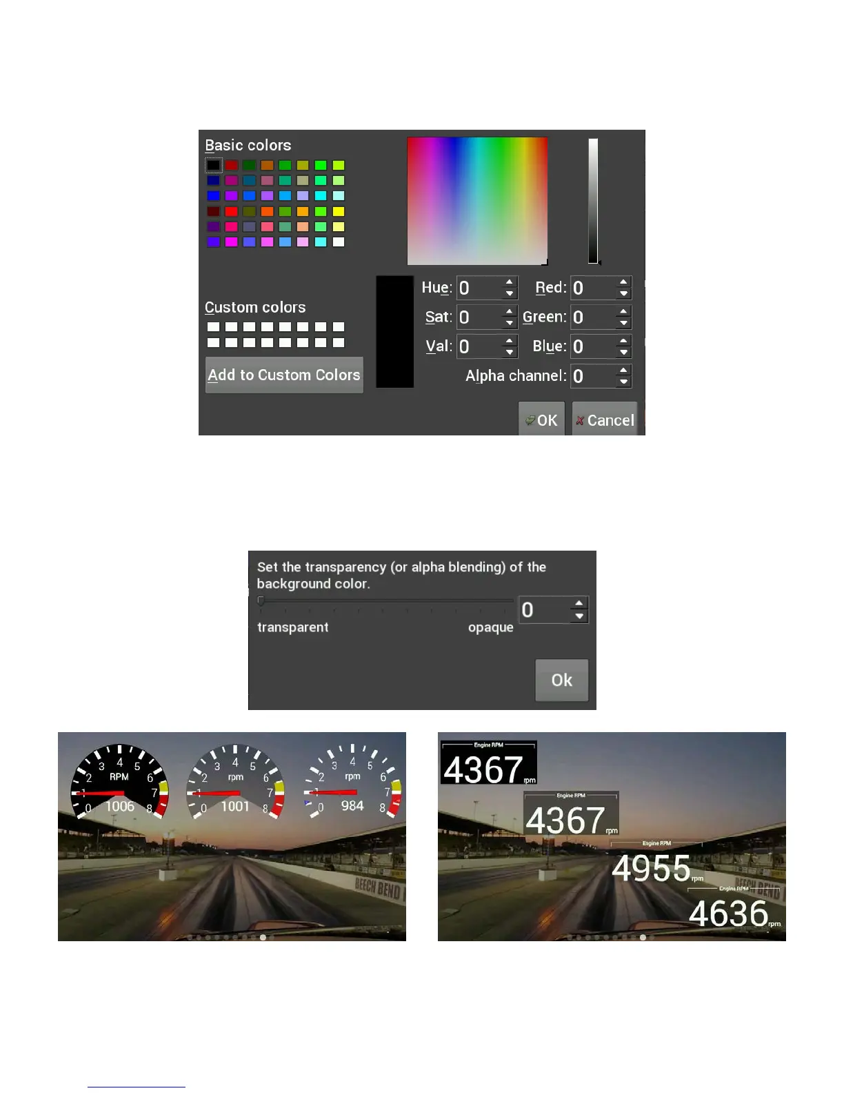 setting the alpha channel in the color selection box for the gauge background. See the examples below.