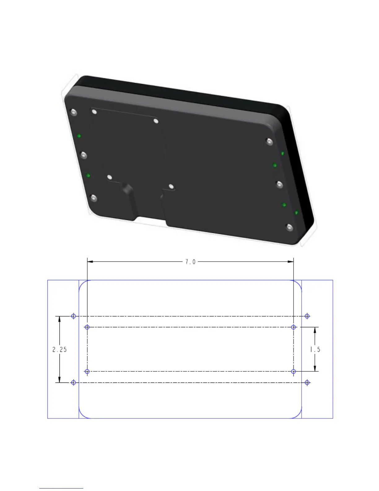 The product has eight tapped 8-32 mounting holes to allow the user to surface mount or flush mount the
