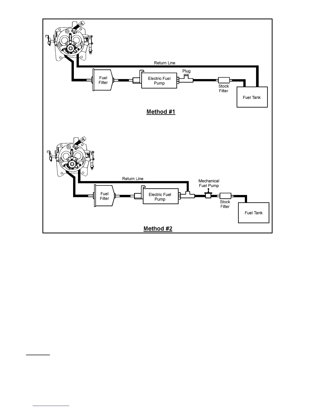The mechanical pump should not be used when the fuel return line goes to the fuel tank. Route a section of 3/8” hose from the