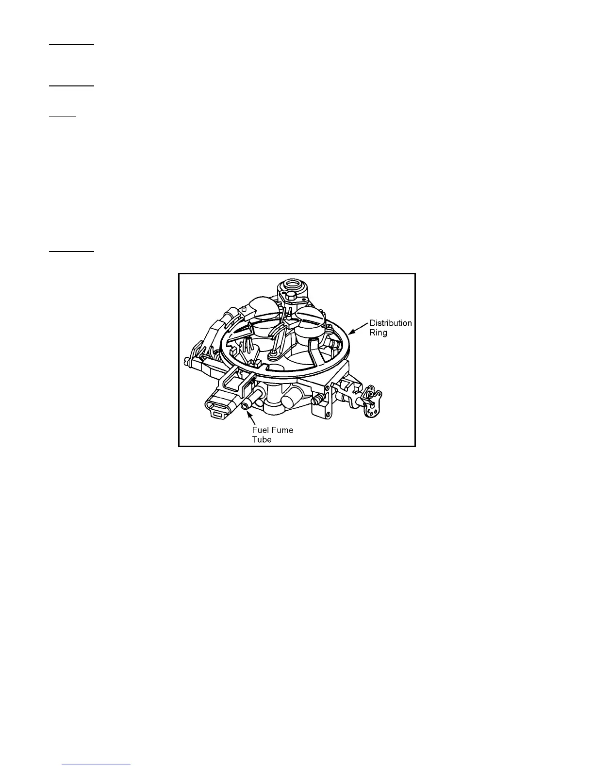 Shown in Figure 12 is the proper installation of the distribution ring on the throttle body. Be sure the tabs point upward and rest