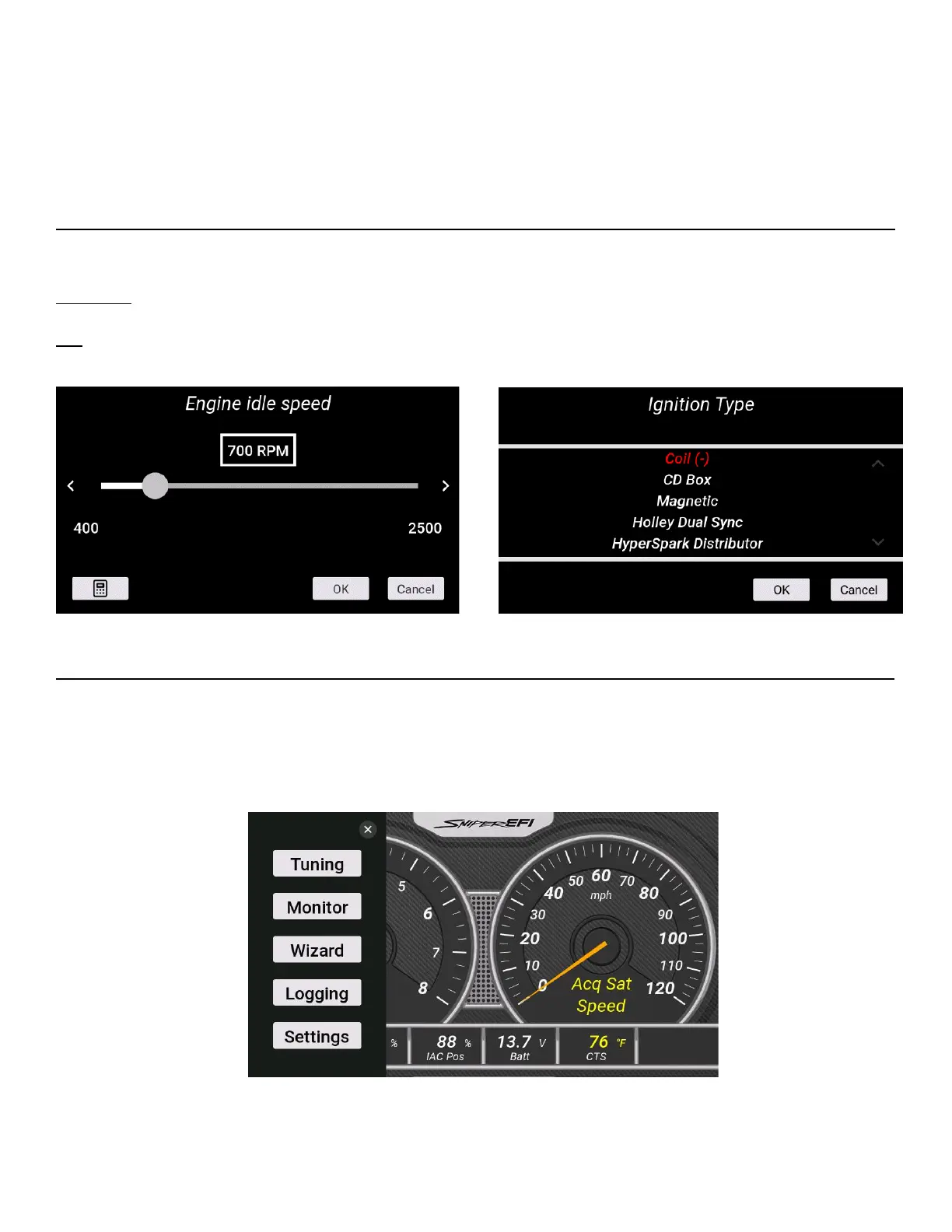 The home screen contains icons which will navigate to different functional features of the 5” Dash. These