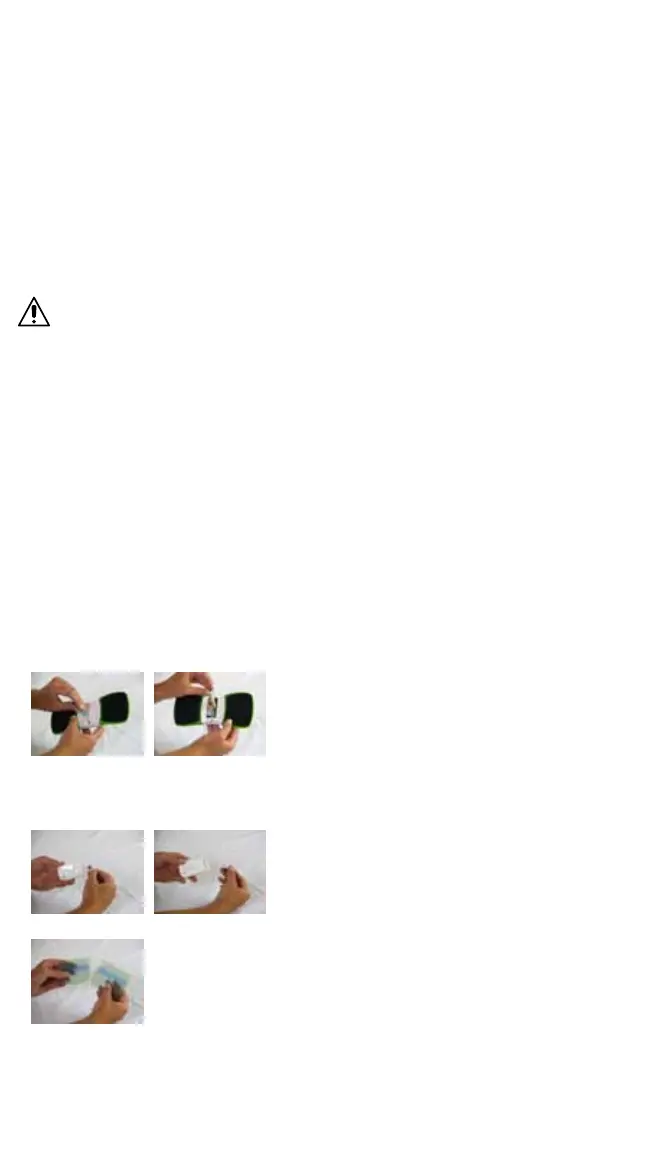 • BittewährendderStimulationIhreFingeroderandereObjektenebenoderzwischenIhreHautunddieadhäsivenGel-Pads
