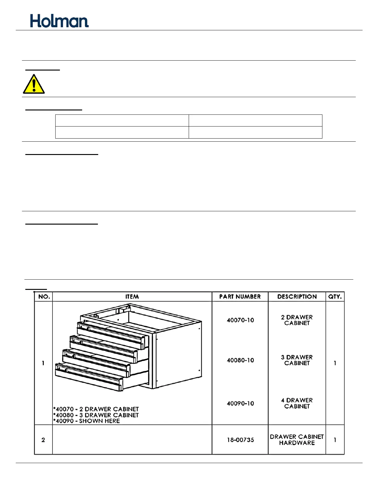 Instructions are shown using a 2-drawer unit (40070). All instructions are the same for