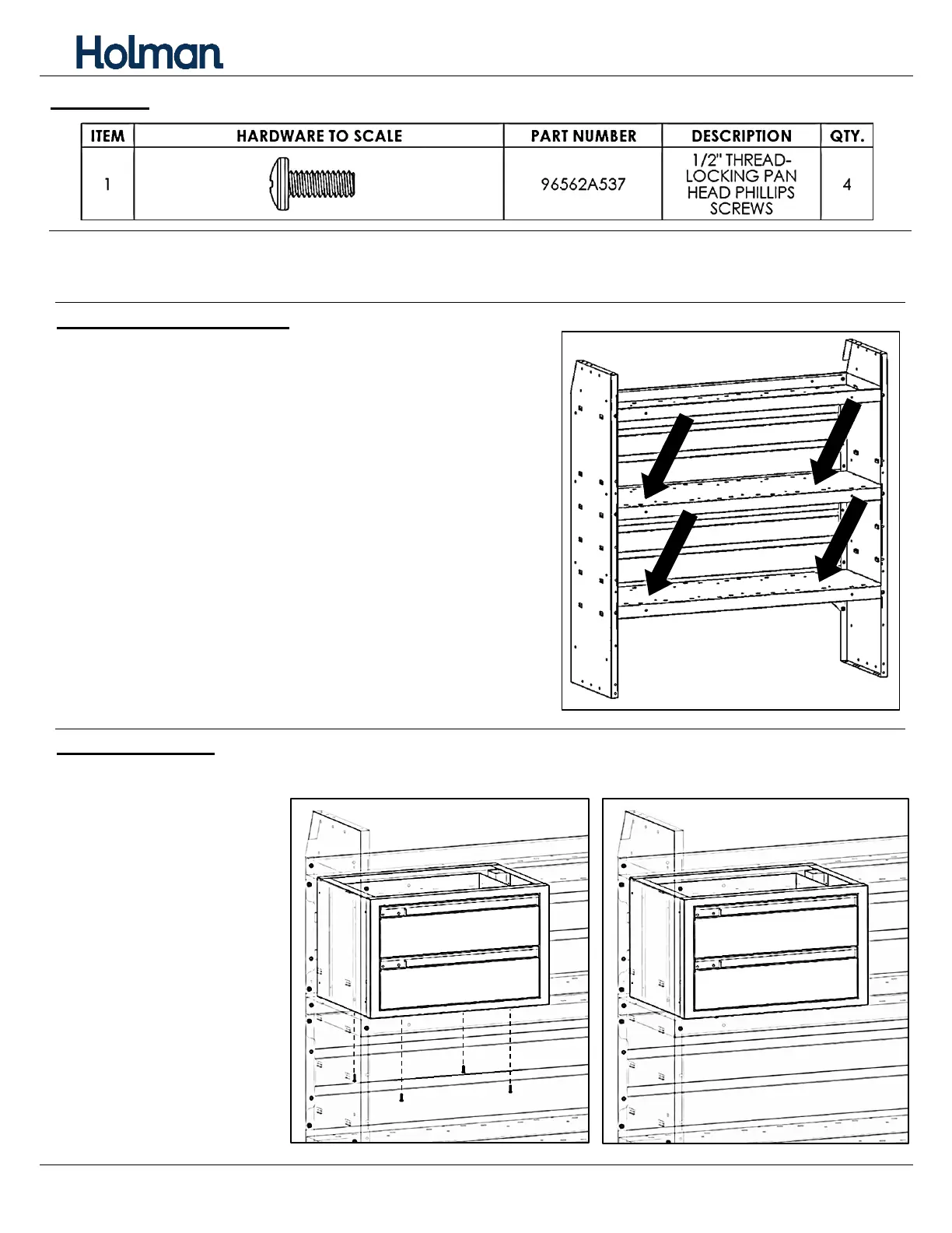 Note: The following instructions show Installation of 40070 2-drawer unit. The installation is the