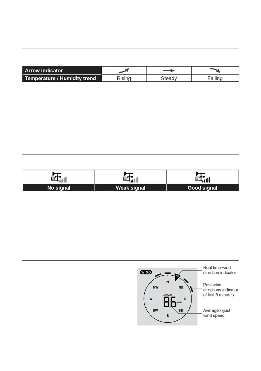 1. The Main Console display signal strength for the 5-in-1 Wireless Outdoor Sensor, is as per the table below: