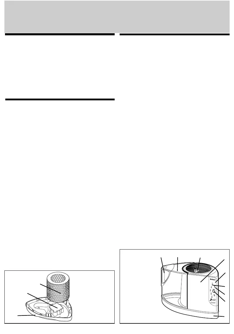 humidifier base. The humidifier will produce up to 2.5 gallons of