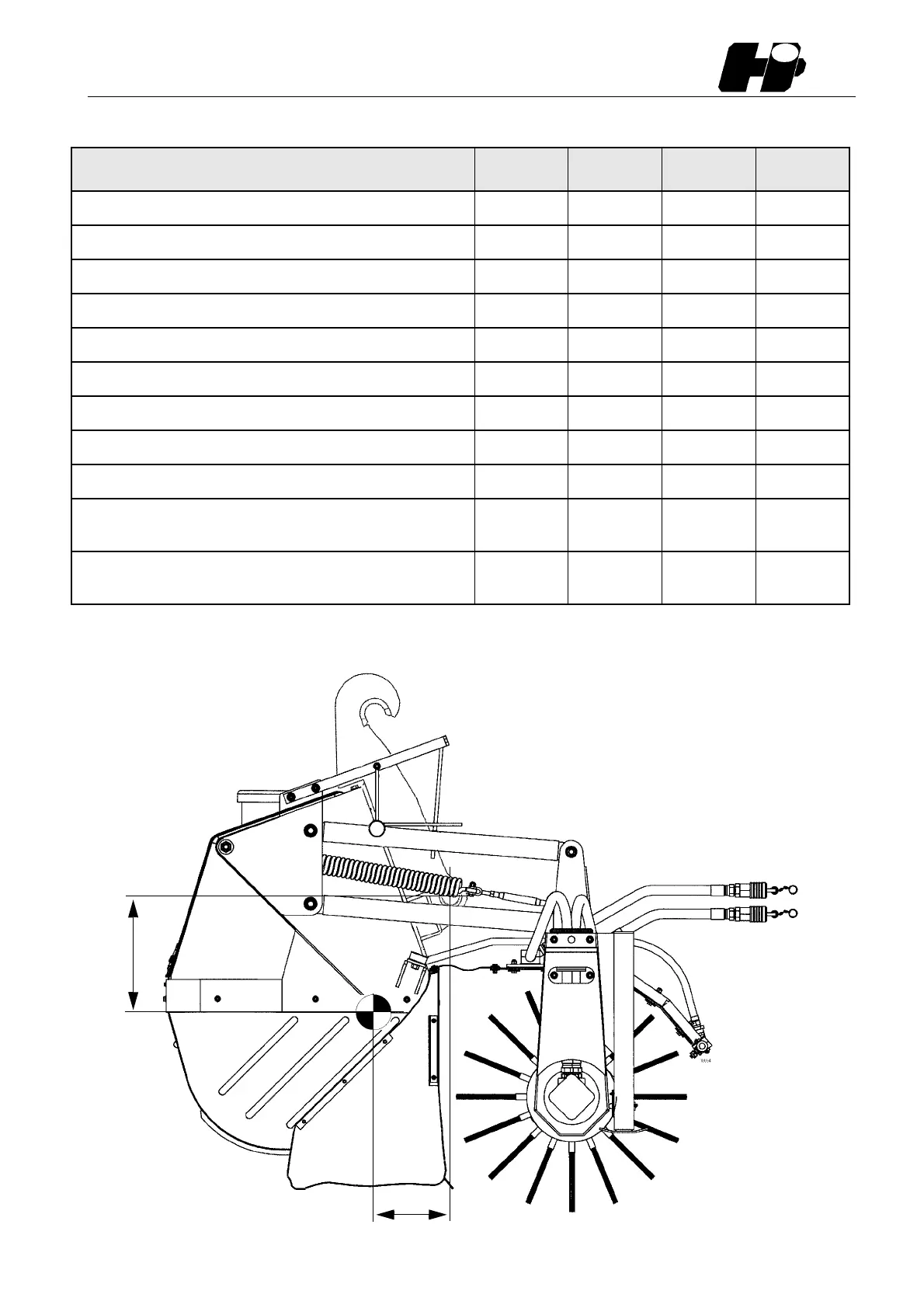 Centre of gravity, A in sketch (empty)