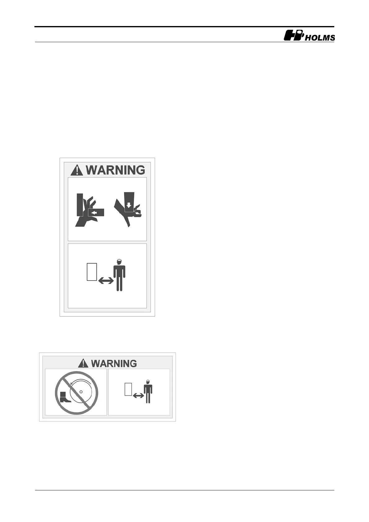 Clean/replace warning labels if they are illegible or are missing. Contact you Holms dealer if you