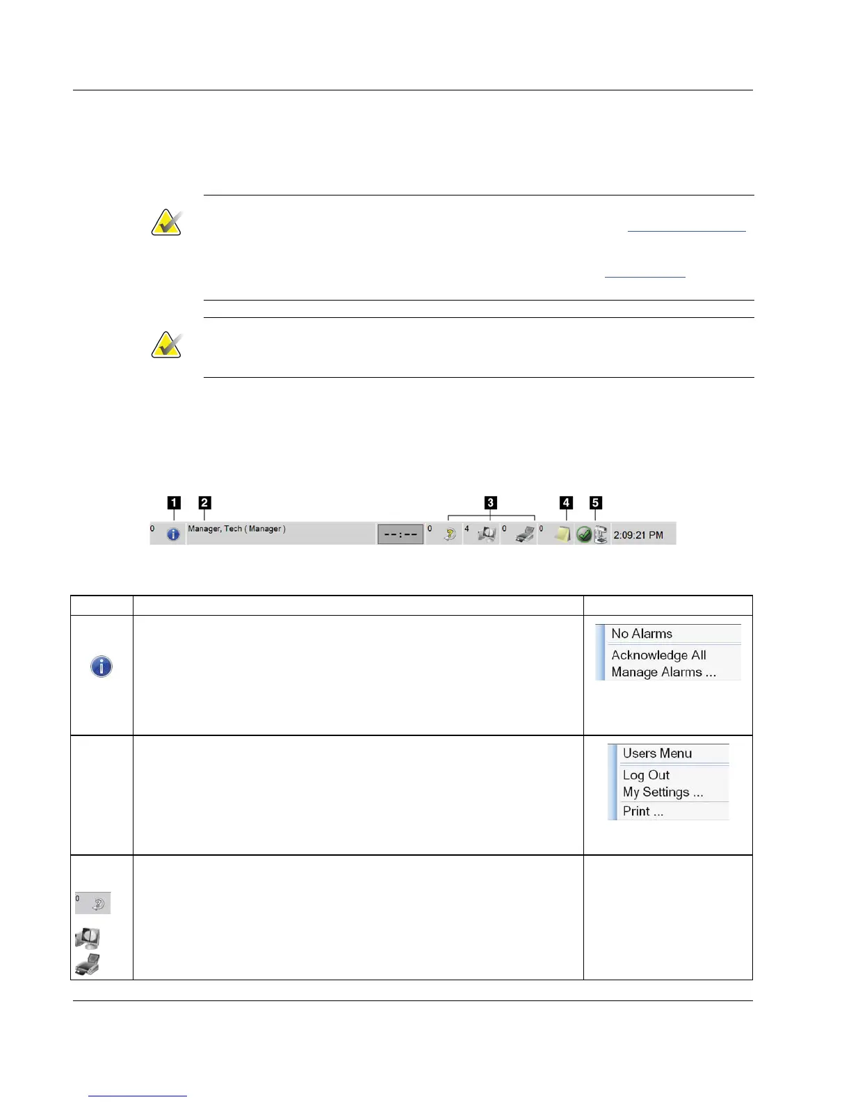 This section of the taskbar flashes a yellow color when an alarm exists.