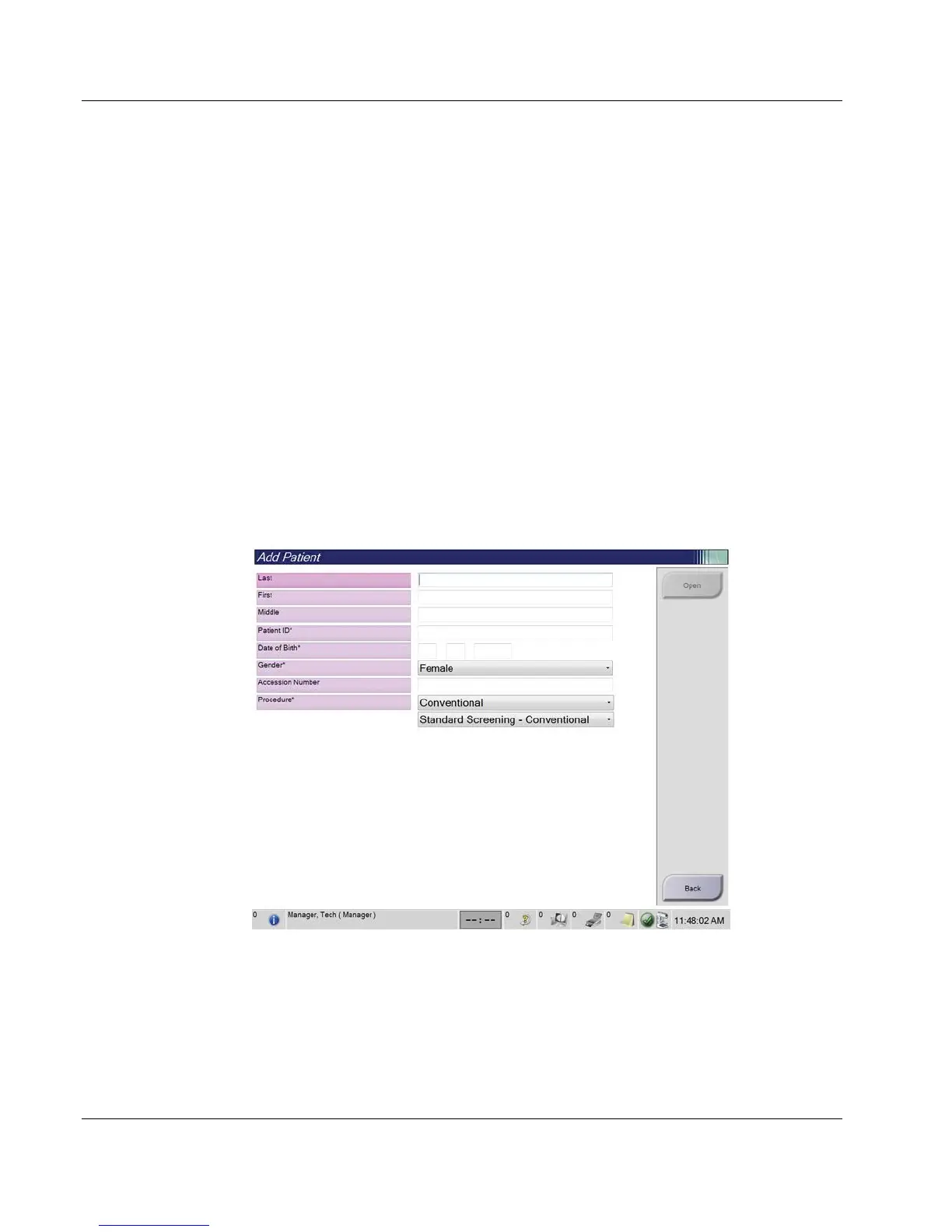 3. Select the Open button. The Procedure screen for the new patient opens.