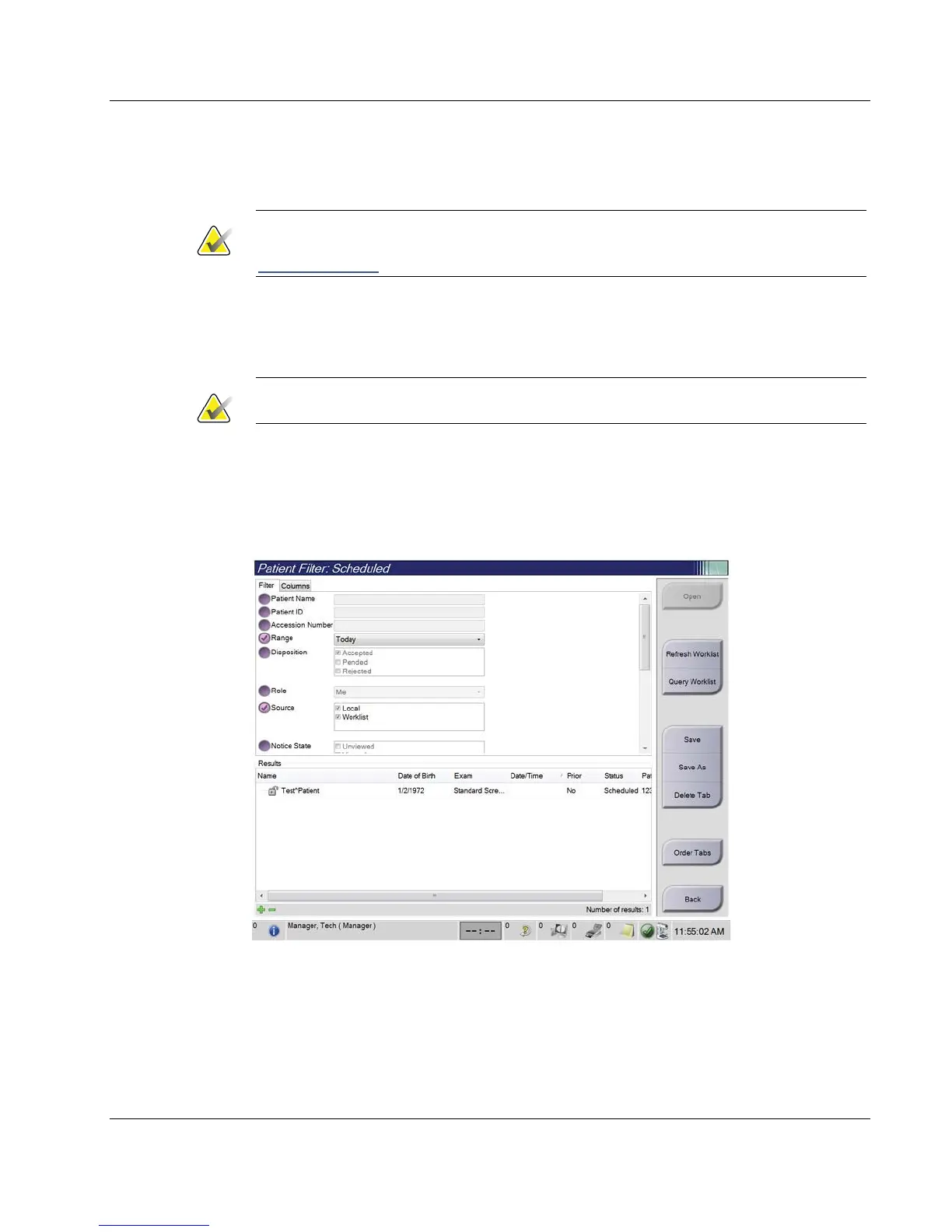 After selecting the Filter button in the Select Patient screen, the Patient Filter screen for the